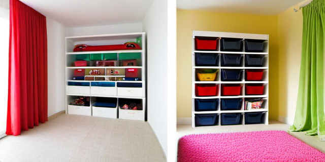 | Организация хранения | Корзины и коробки для разделения игрушек по категориям; доступность для ребенка | Низкие полки с ярлыками для разных предметов |