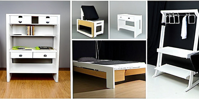 Например, кресло, которое превращается в небольшой столик или сундук для хранения, а также полки с откидными секциями.