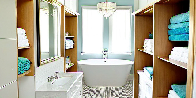 В зависимости от размера ванной и состава семьи можно использовать различные типы зон хранения.